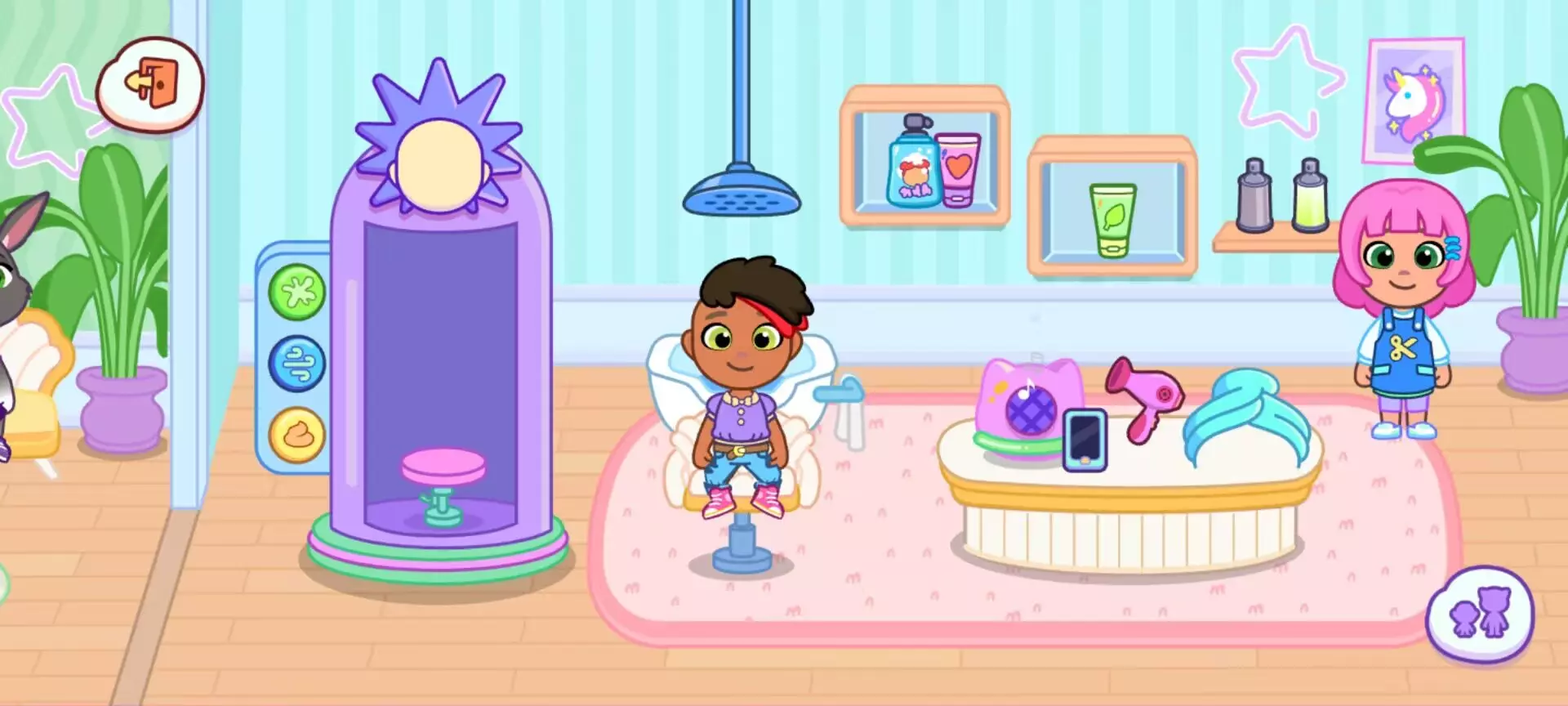 2.发廊场景:洗头区使用「泥状洗发水」冲洗后,角色可能意外长出树叶或花朵装饰,需再次修剪才能恢复;造型区快速点击镜子 5 次,触发「换装秀」彩蛋,自动切换 5 套不同风格服装。