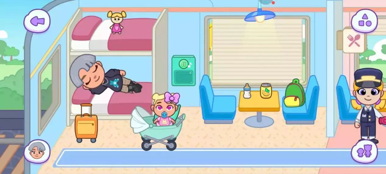 (四)睡眠区:卧铺车厢的夜晚上下铺床位可 “展开被子”“关闭床头灯”,婴儿车支持 “摇晃入睡”(滑动屏幕触发摇摆动画)。紧急按钮点击后会触发 “全车广播” 音效(虚拟语音:“请注意,前方到站……”),适合设计 “深夜紧急停靠” 的突发剧情。