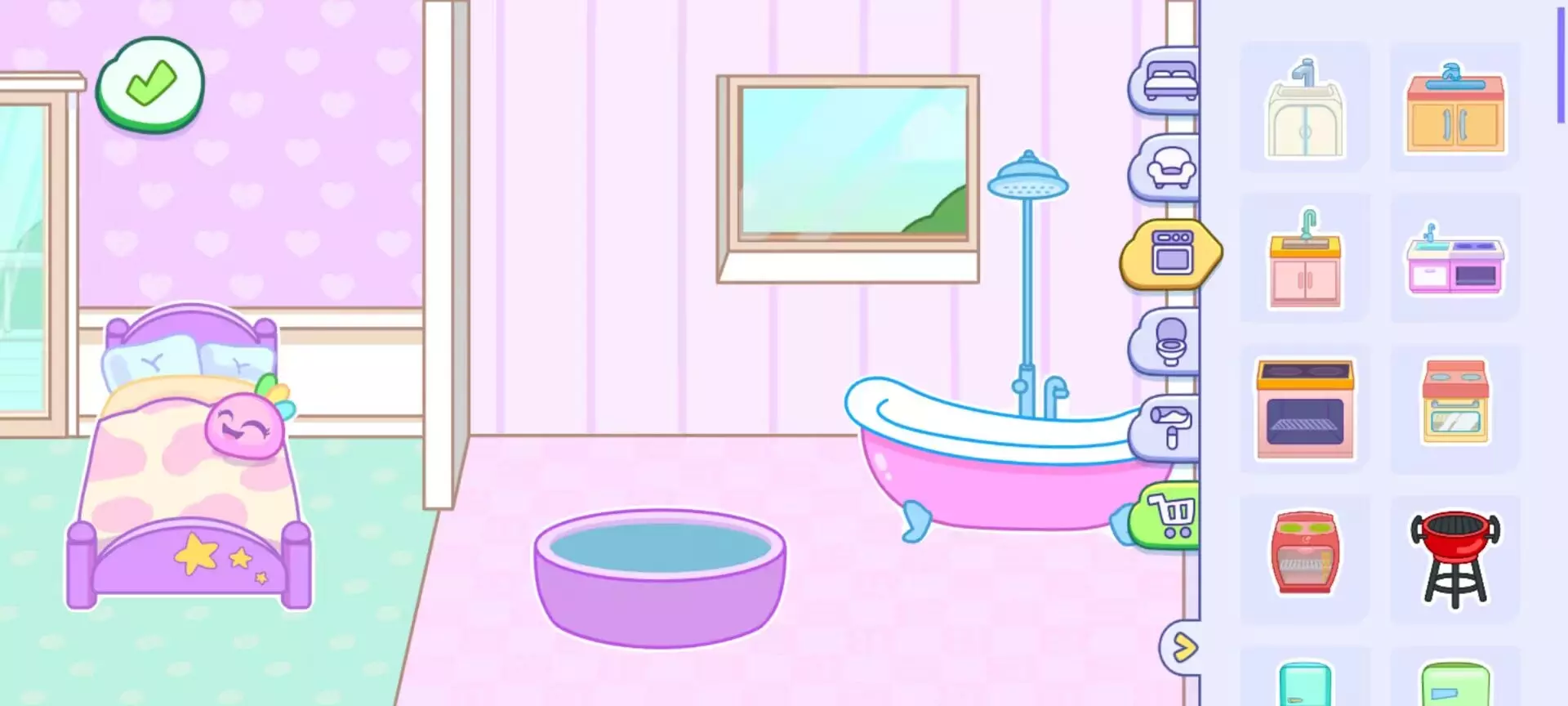 ·厨房:冰箱提供煎蛋、三明治等基础食材,炉灶煎蛋时停留 5 秒会触发「焦糊冒烟」彩蛋。