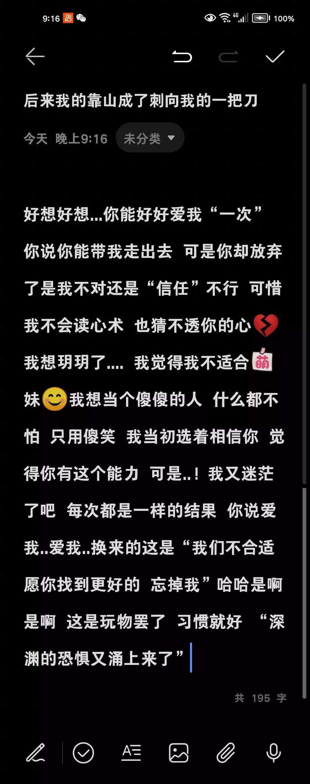 始终都是自己一个人何必说“爱自己呢?”你的身影好模糊啊😊