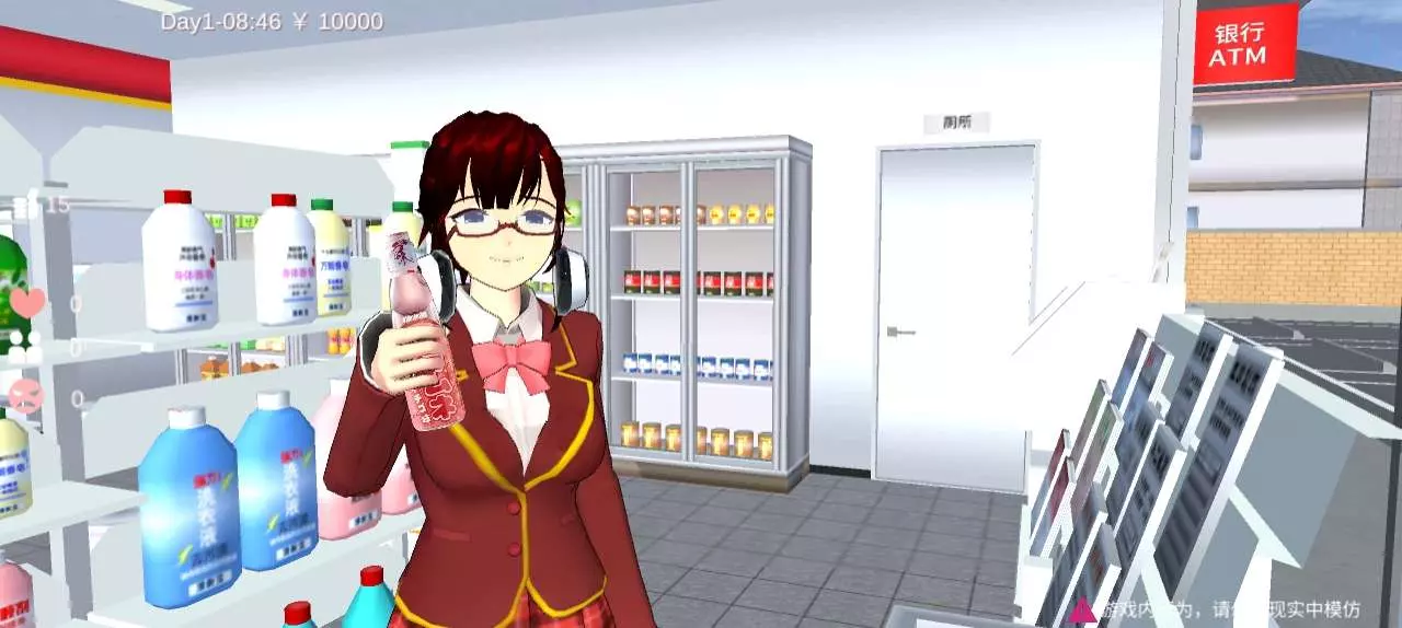 今天和学妹来逛便利店,嗯...这个巧克力看着还不错,吃巧克力吗学妹(笑)听说巧克力可代表着爱情哦~哈..开个玩笑啦。葡萄和桃子味的汽水也不错呢,就买桃子味的怎么样?桃味のサイダーを買ったらどうですか?