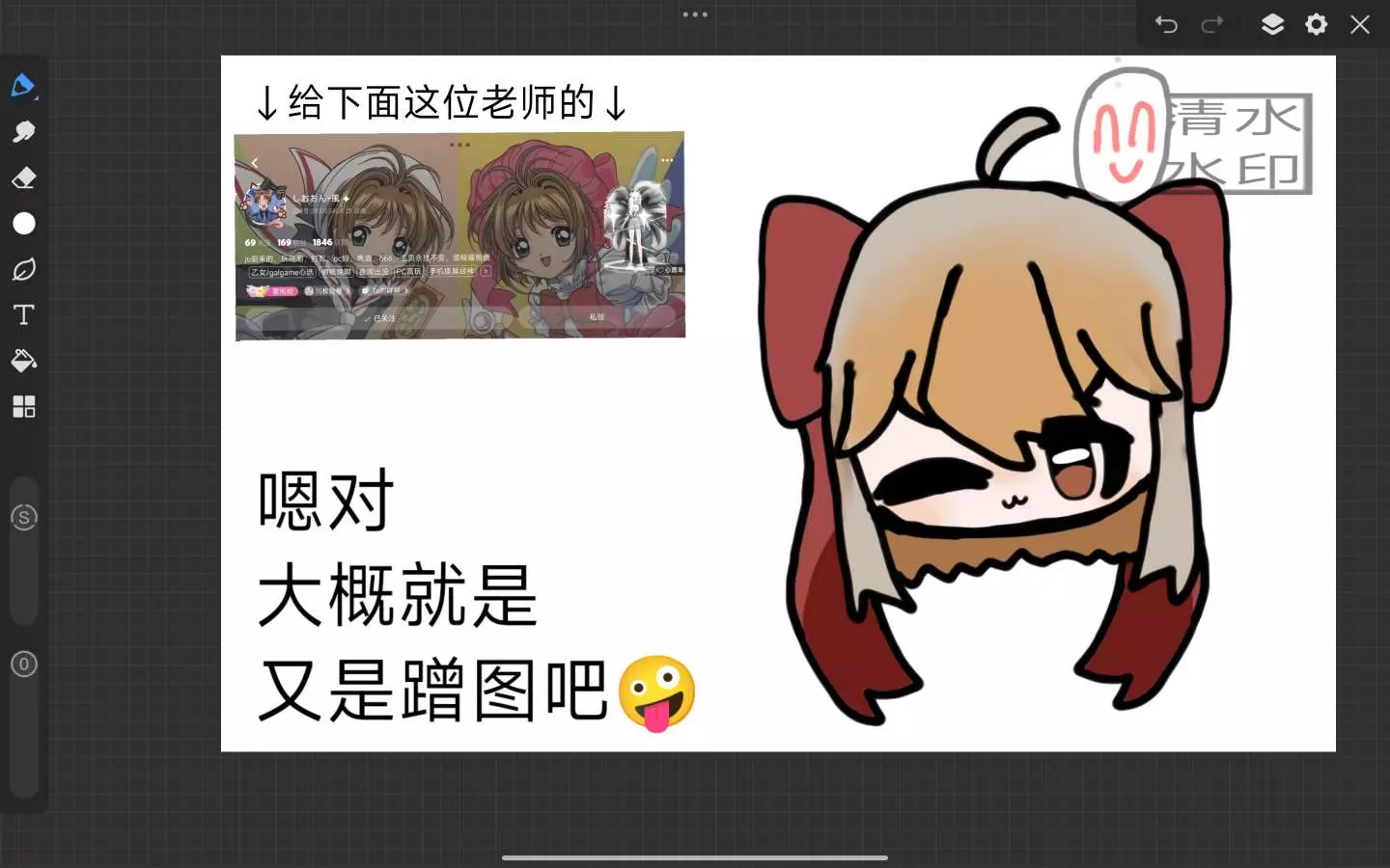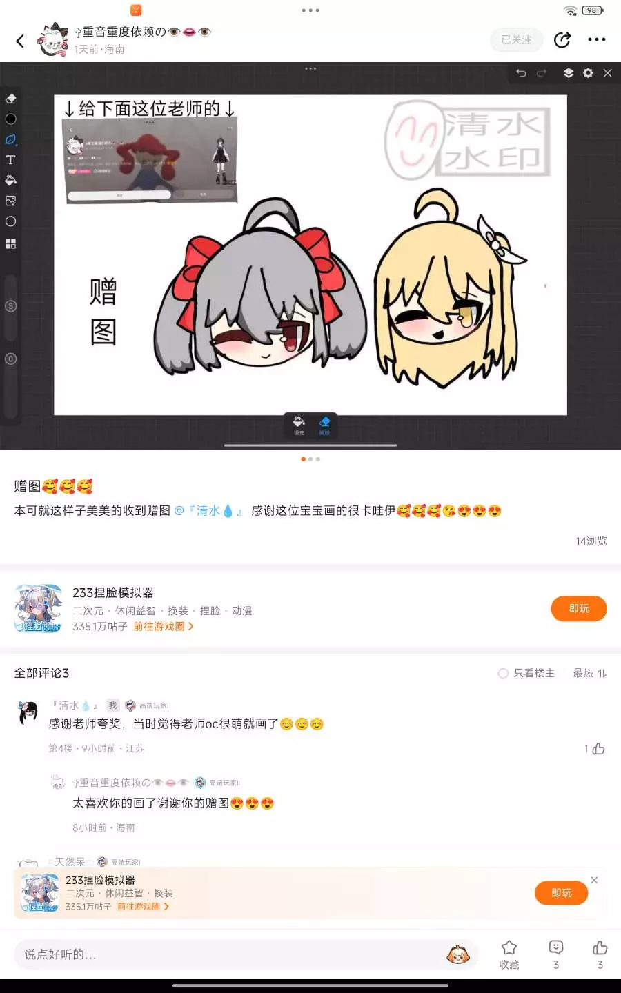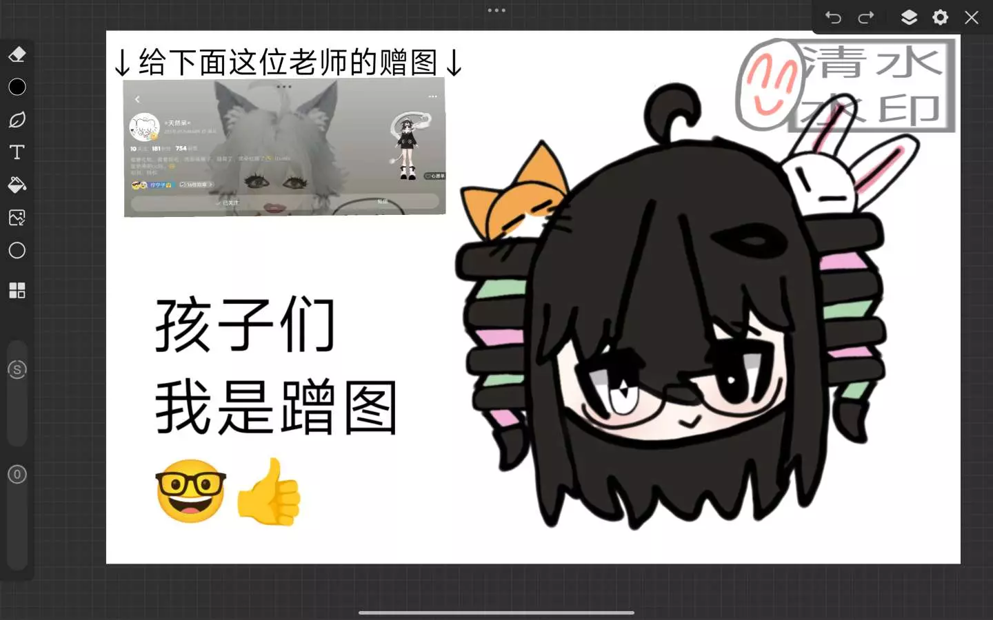 嗯对大概就是继续炫耀做的赠图被发帖子了吧嗯对😎😎😎嗯,对,大概就是同样给这位老师做了赠图,然后也是被这位老师成功的送到帖子里面,并且还艾特了我!😏😏😏 @乖药片 感谢这位老师把我送的赠图发到了帖子!😊就是一个赠图回赠礼,但是突然间发现老师oc真的太可爱了!😘😘😘😍😍😍