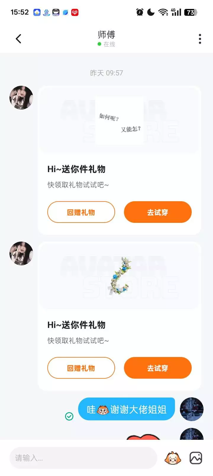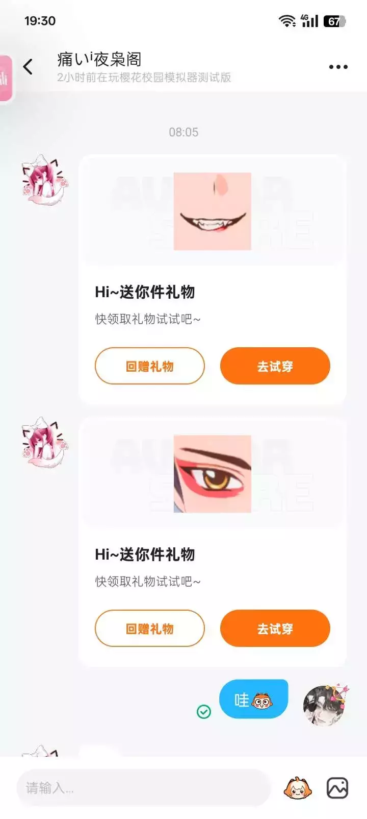 今天玩心愿的时候,这位姐姐给了我礼物^ω^