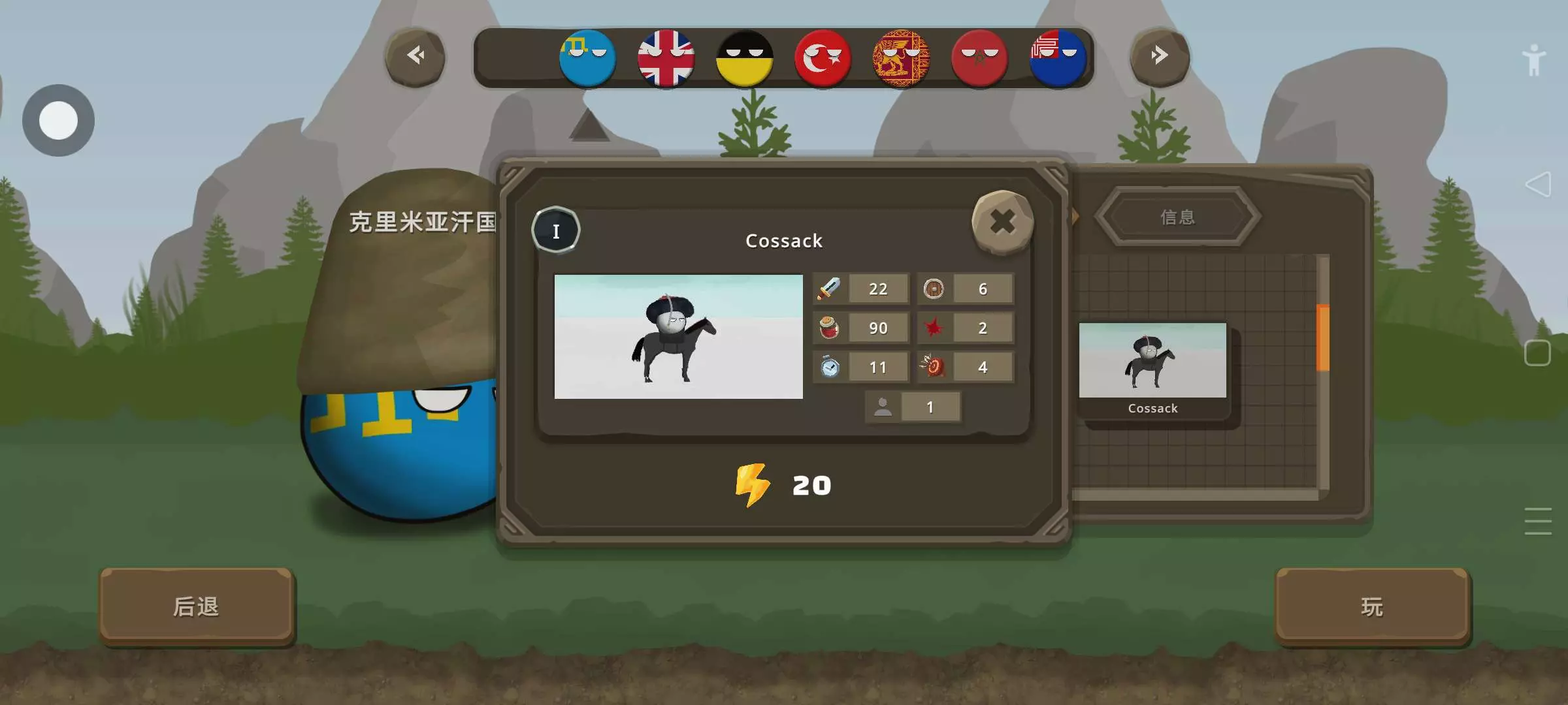 第二个,俄罗斯骑兵,总功率只有20,血量150,十分的薄,第三个美国,骑兵,总功率,26,血量也可以,第四个荷兰枪兵,总功率跟俄罗斯骑兵一样,还有点小贵,不建议使用,第五个俄罗斯,最好的枪柄,总功率,25