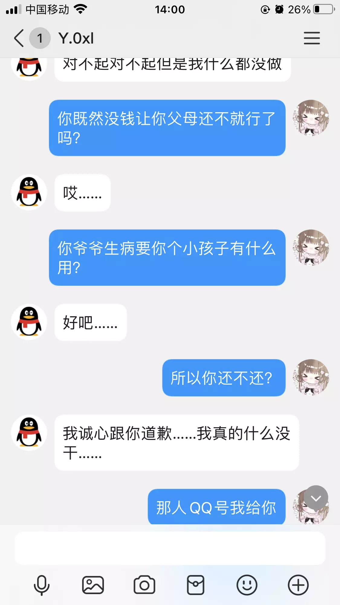这个人向我朋友借钱不还 说是她爷爷生病了没钱了 后面呢 她还卖惨 我朋友本来打算原谅她了 她还去找人骂我朋友 然后呢 我朋友向她家人说 她家人把我朋友拉黑了