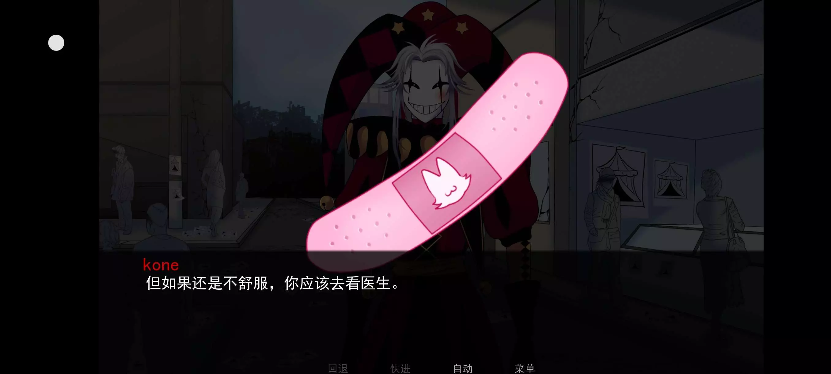 这个小p真的是太萌了 喜欢蒙面的可以试一下这款游戏小p的性格的话比较像一个极端的占有欲 还有另一个角色小h我没有截他的图,因为我不是特别喜欢他因为给我的感觉更像是在和小p打赌,谁能够得到主控千万不要接那个粉票,不然就是失踪结局 如果一开始冷落小p的话,就是会被带到马戏团吃掉 接受小p的好意或者是小h的好意,可以达成好结局