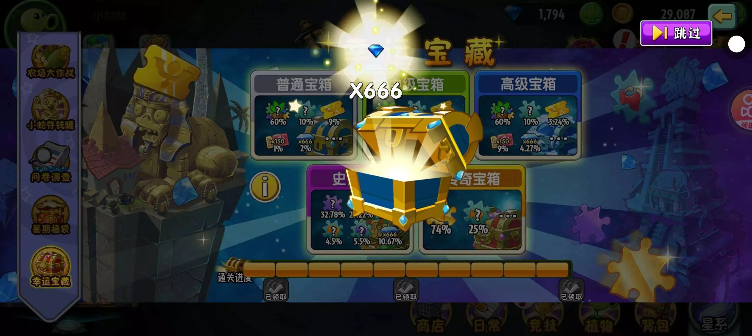 运气也是贼好的,今天开了仨大蓝钻