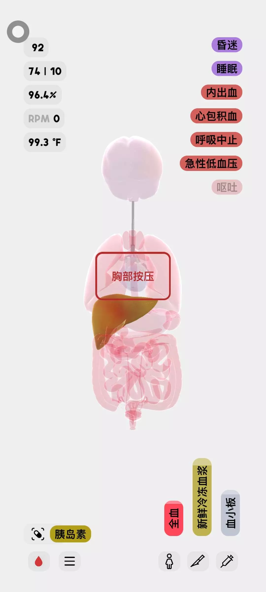 一局游戏遇到两个稀有病,心肌梗死和心包积血