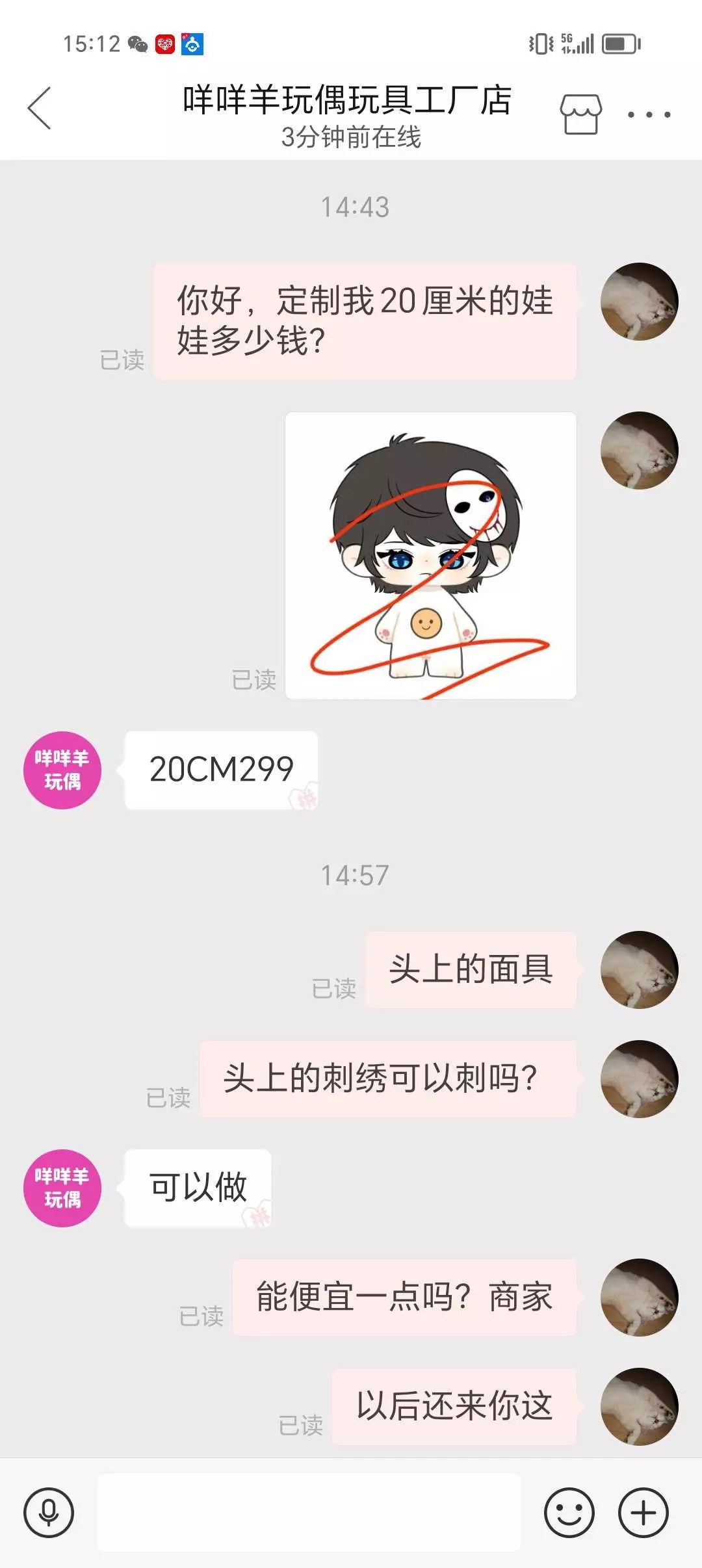 我已经开始定做玩偶了,到时候成品给你们看看,哈哈哈真开心