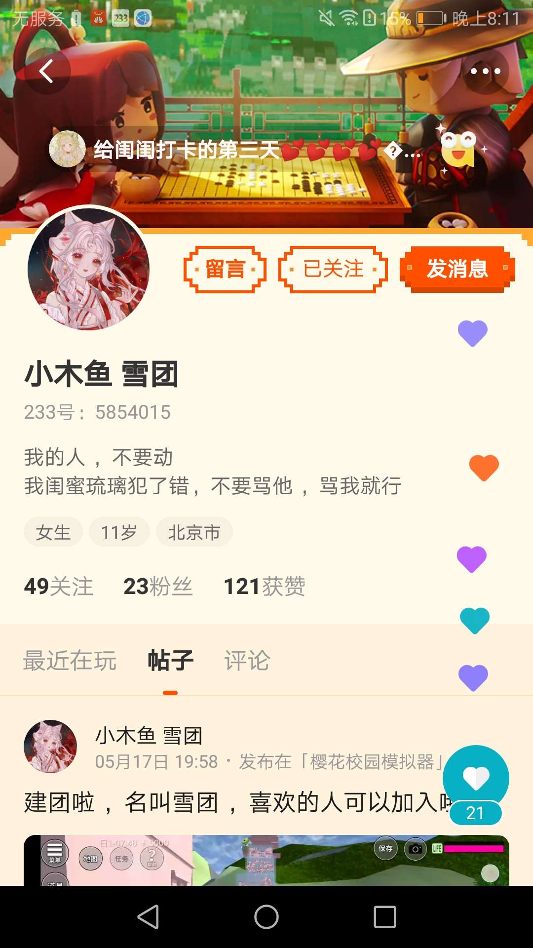 希望大家关注我闺闺~谢谢!
