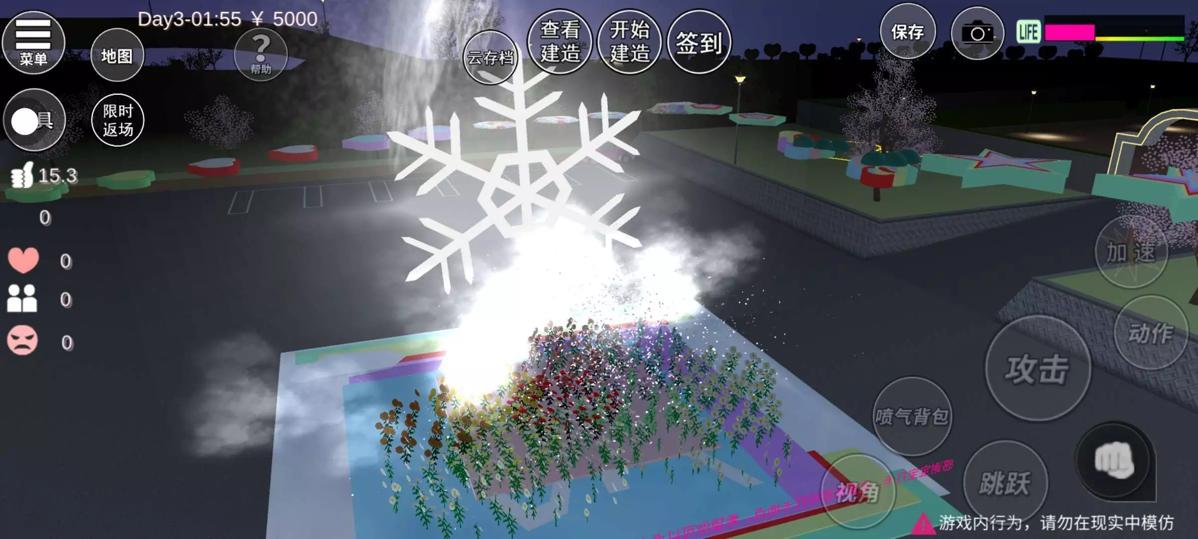 有点短哈,后期如果你们想让我出逃离,其他的我也可以出哈,尽量的不要重复,然后呢这个绿色系做的挺用功的,后面还可以打卡就是如果天亮的话,那会显然黑那样的话,那你可以站在那个雪花的后面,这样就比较白,不会的看我第三张,第4张是跑酷密码