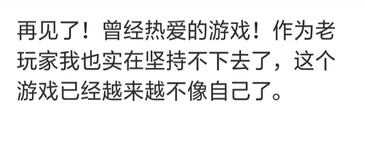 再见了,曾经热爱的游戏,作为一个老玩家,我已经实在坚持不下去了,这游戏已经越来越不像自己了,我退游了再见!