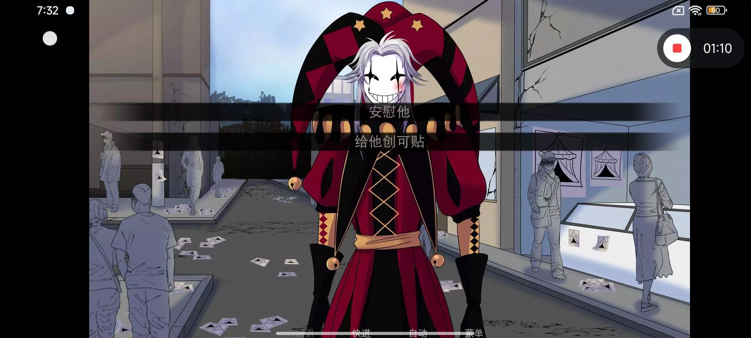 这里就是关键,不要吃马戏团里被下了药的食物,这样在Pierrot问你表演怎么样时你就会保持清醒,回答完问题后选“最好不要”Pierrot就会拿出一块蛋糕给你,吃了之后人就昏了,也就达成了这个结局