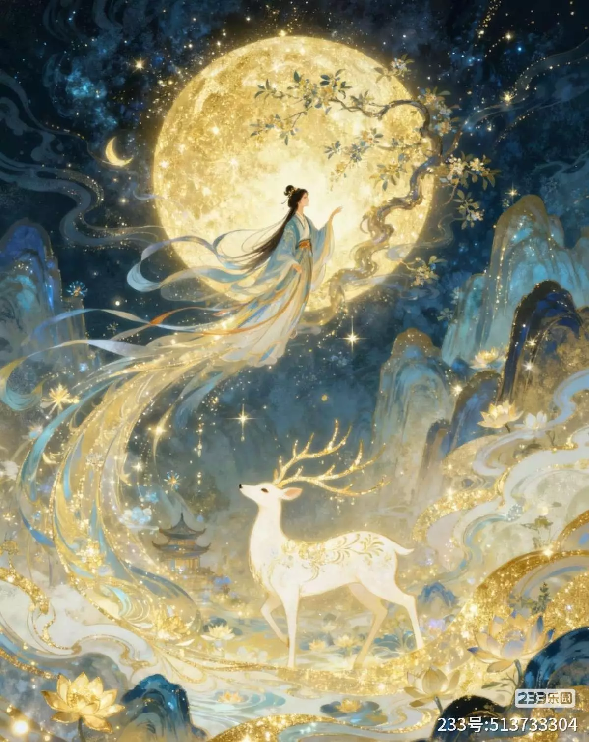 如同一幅生动的中国水墨画,结合了古建筑的庄重与自然界的和谐,再点缀以梦幻的夜空和流星,构成了一幅既现实又超现实的美丽画卷。