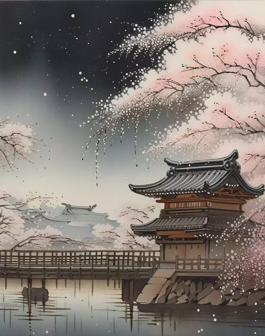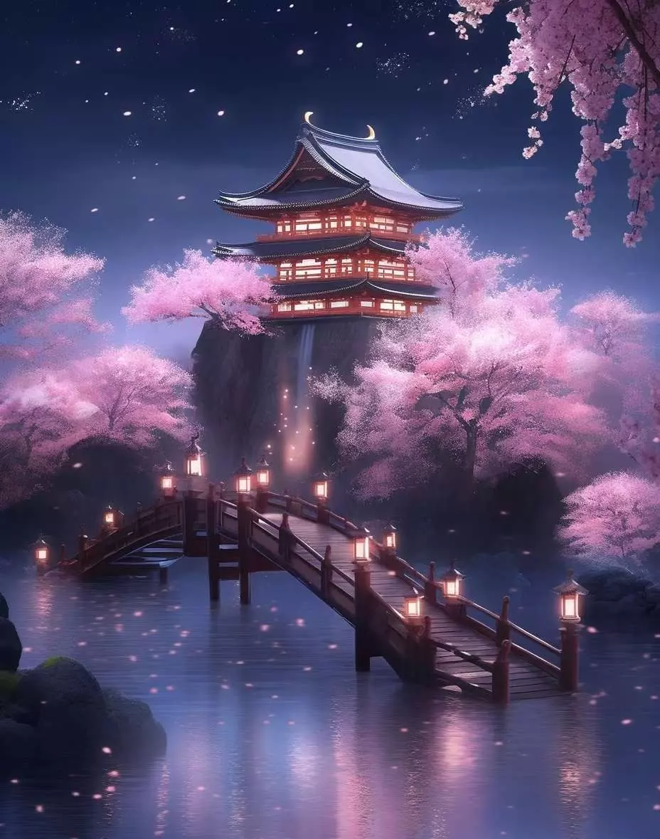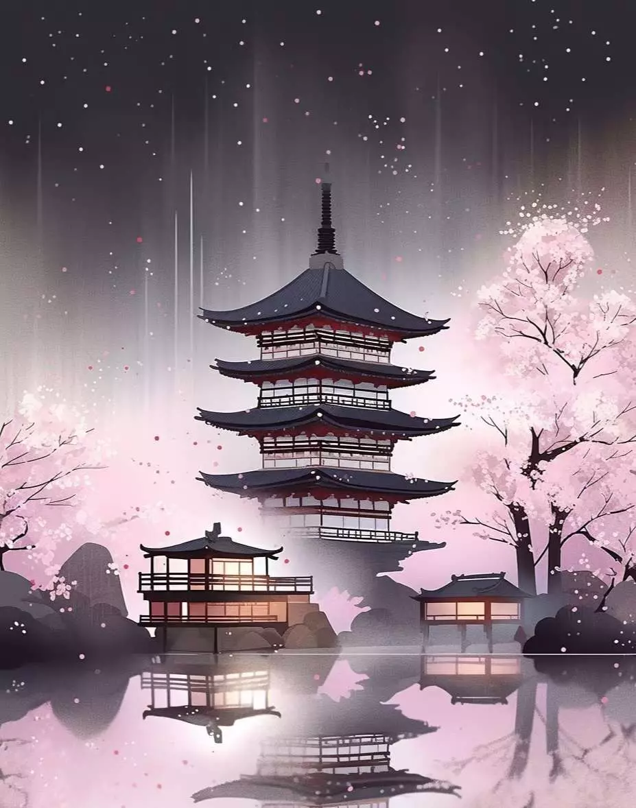 粉红的樱花在微风中轻轻飘落,如同一场春日的梦幻,花瓣随风起舞,落在水面和地上,为这宁静的景象添上了一抹生动的色彩。空气中弥漫着淡淡的花香,让人仿佛置身于一个远离尘嚣的仙境。