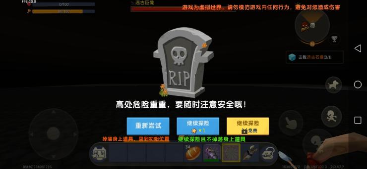 虽然我就是上来试试水,但是事实证明根本不是一个分段的对手,还有氧气背包不好用,被远古巨人震起来就摔死了。