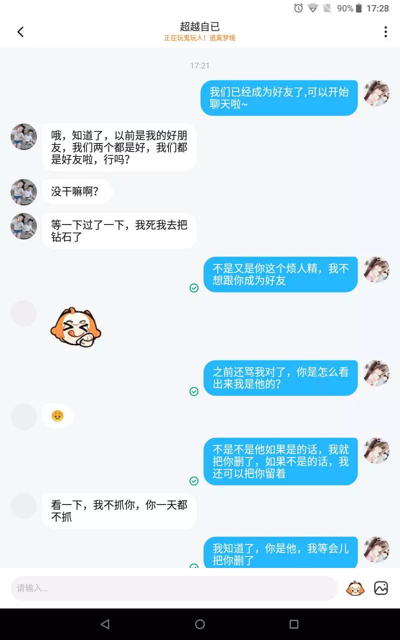 事情是这样的,昨天晚上我看到他还没有关注我,直到他关注我后,他开始保存我的头像然后他不想被暴露,他就把他那个名字换成了呆筋后面还跟我弄了一模一样的不处你也太狂了,居然敢模仿到我头上了幸好我把我的装扮关闭了不然他还得模仿我的装扮你这关注取消吧,我不想有你这样的粉丝