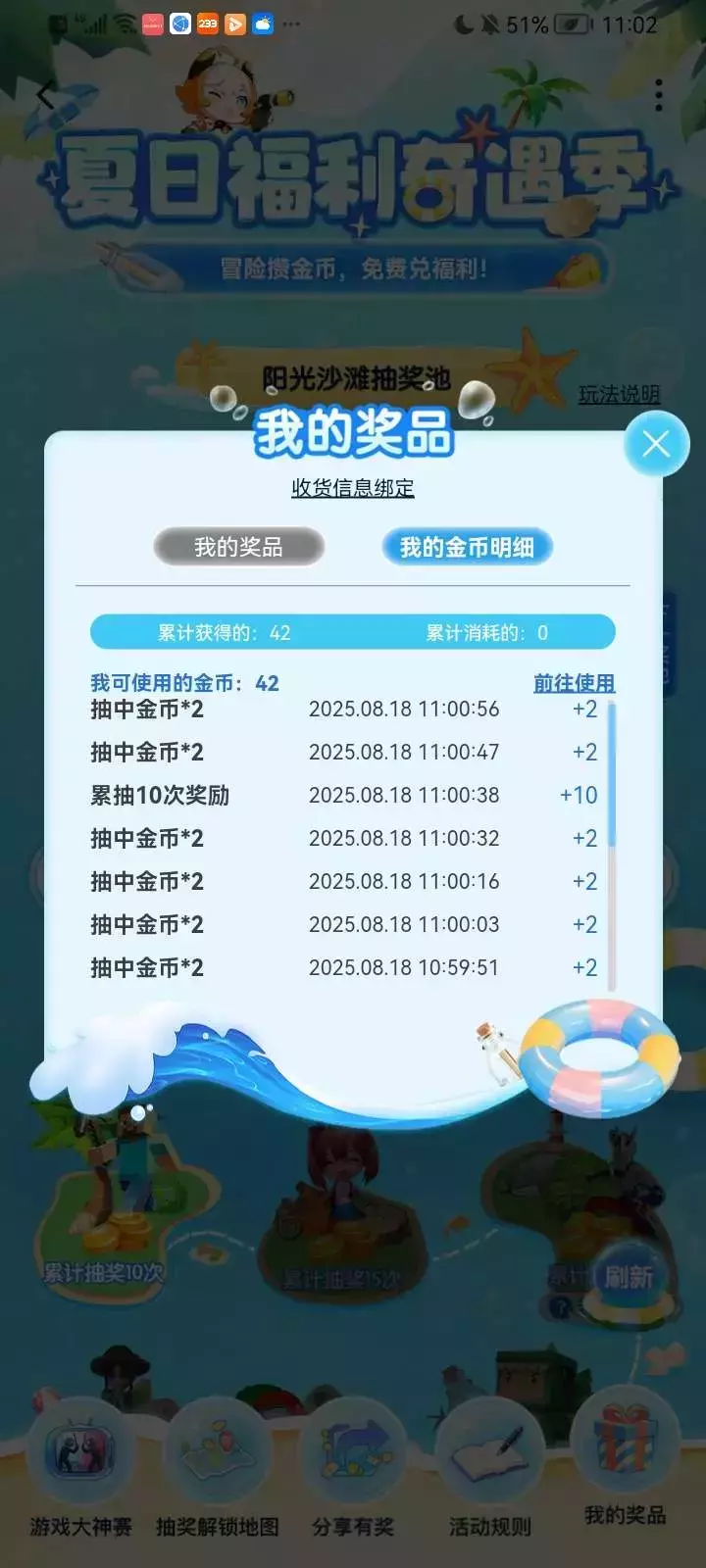 抽了11次全是2个金币