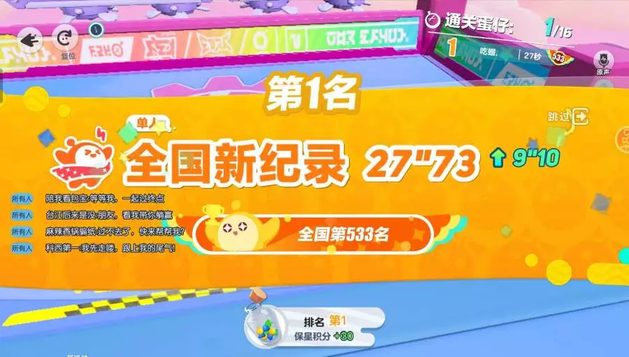 不是吧?不是吧?不会还没有人得到过全国记录吧?哎!这是我5次的全国记录了,你们没得过吧?真不知道是谁的一辈子啊!#蛋仔派对