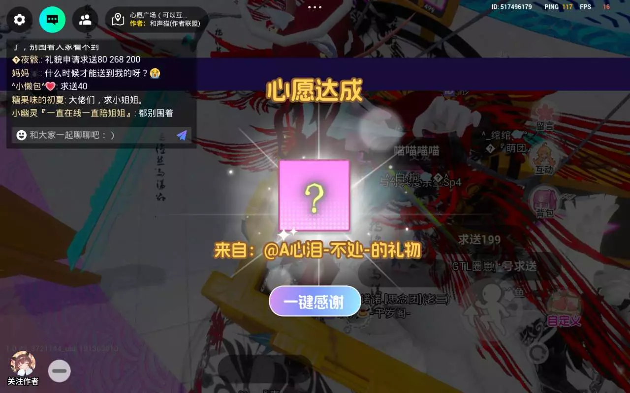 他真的很好,希望你们能在心愿广场遇见他。因为当时挂机了,还有一个没截到屏。