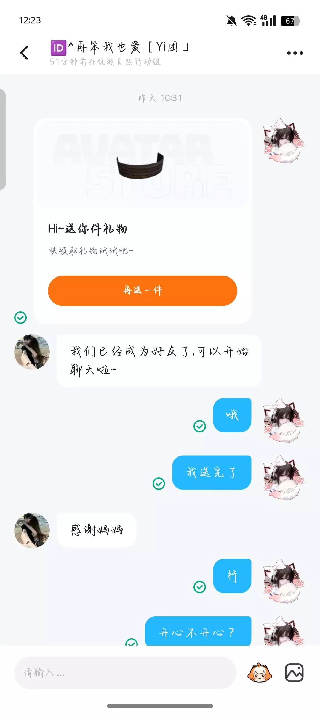 不是应为我不送了,是本猪妞的马沫看见了本猪妞充马内了。所以就不送了。