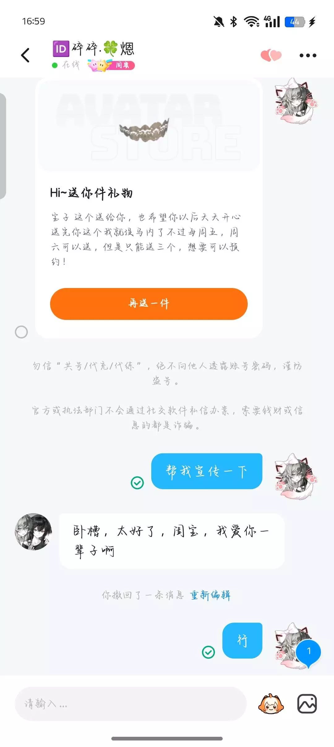 我能送你,但是不想要这种封号。消息都发不出去,然后就会有这样子的信息!!😨