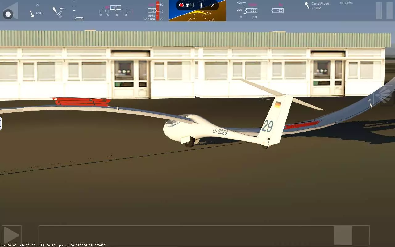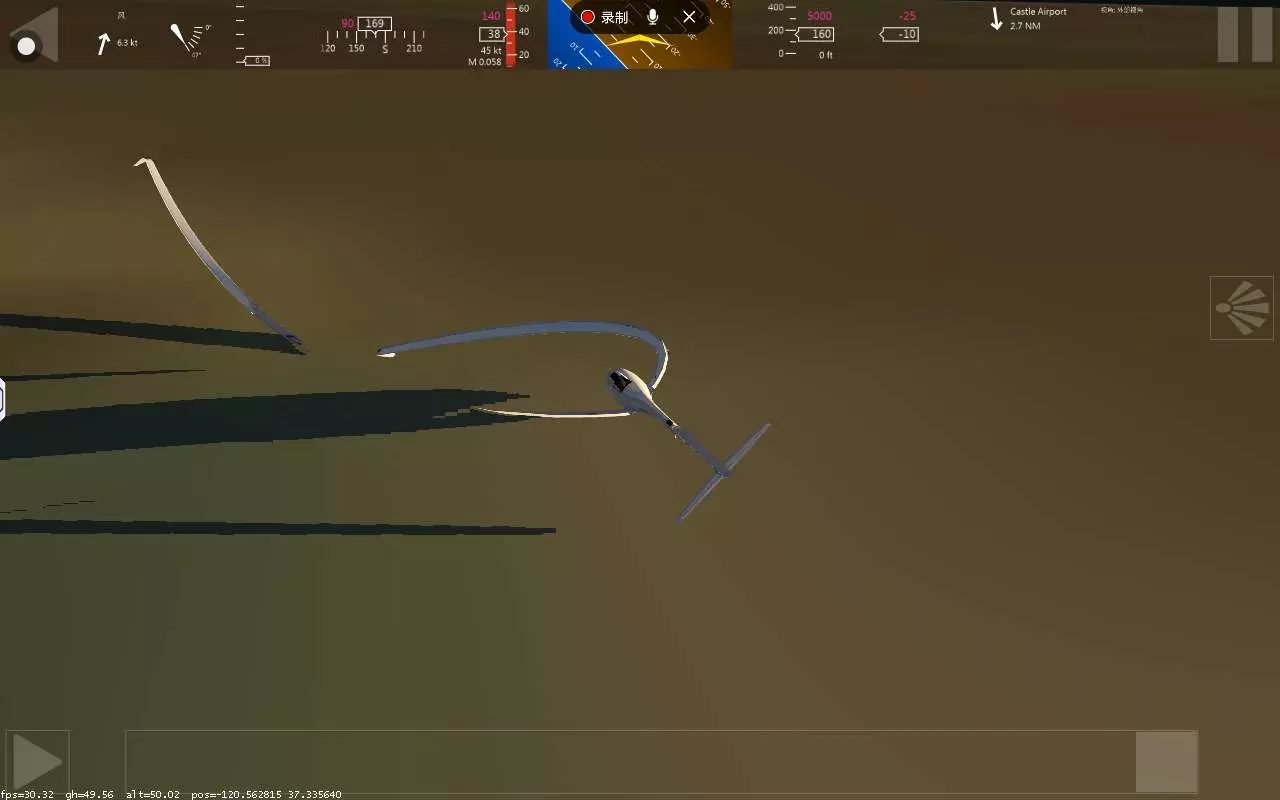 xa 引擎调到50。 尾翼开启 机身往下。 。 到跑道。往上升,让自然降落。
