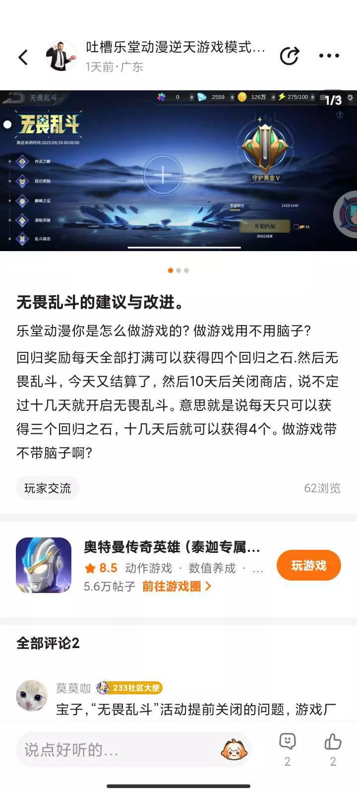 我自己发的吐槽无畏乱斗.就我自己能看,其他人都看不了一点进去就是帖子不存在。233官方你也牛了。居然屏蔽坏的信息。