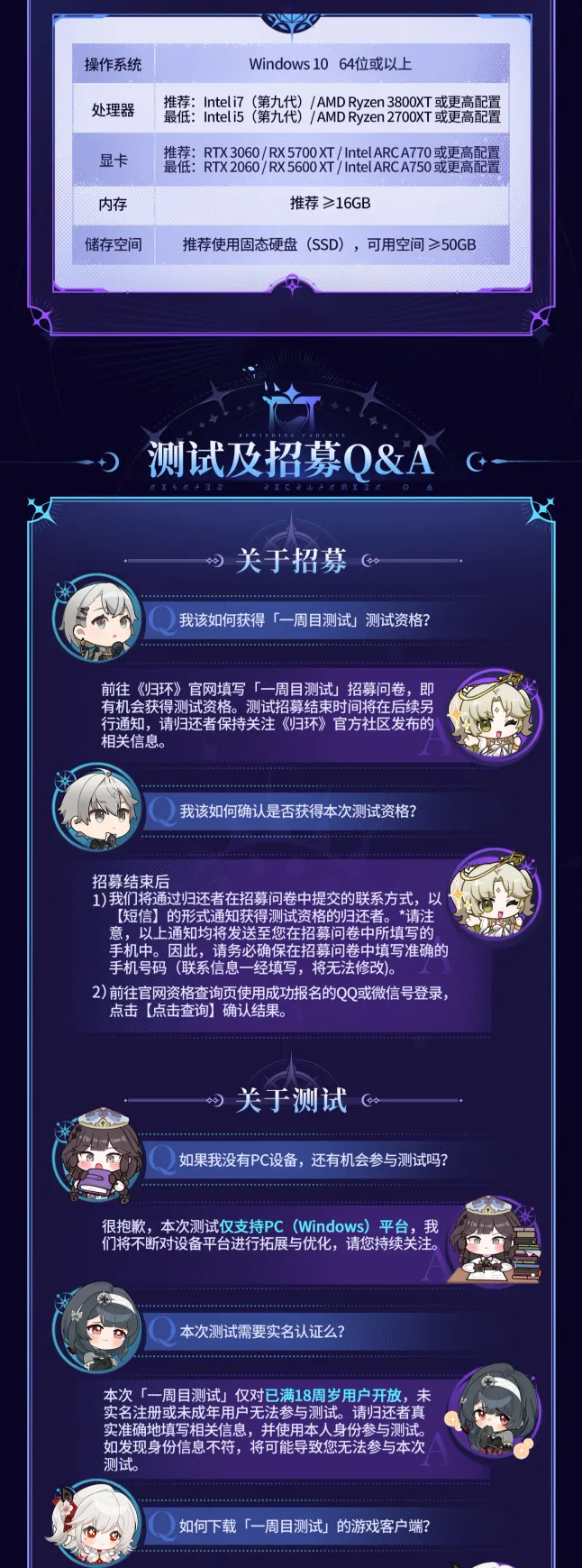 测试时间:测试开启及结束时间将另行通知,请持续关注归环官方账号以获取最新动态。