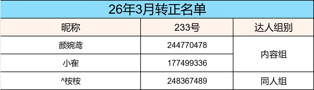恭喜以下实习达人通过努力晋升为正式达人,解锁更多站内权益!未转正的伙伴继续加油,下批名单等你上榜~
