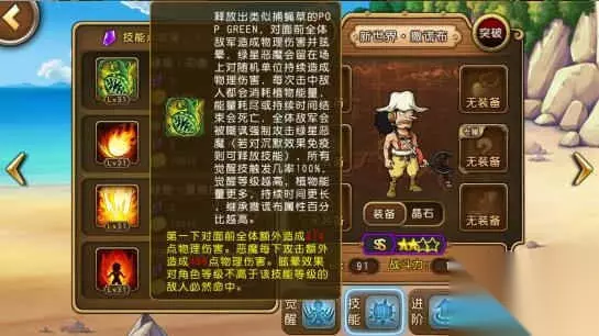 图中在乔巴身下,放置了曼德拉草,有概率击倒对手关键人物的技能释放。这里要提出注意的是,曼德拉草属于物理攻击,并且是多段攻击。在搭配大熊的肉球标记时,会有非常不错的效果,一连串的-75出现,让对手无法开启大招。 技能四 POP·GREEN