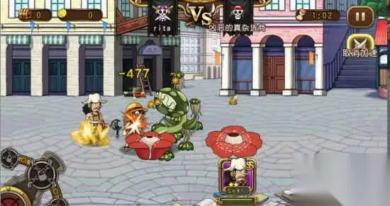如图中所示,路飞被撒谎布的大招嘲讽并且导致逆向。因此该技能可以有效克制有方向性的一切技能,但遗憾的是,召唤出的植物位置随机,比较看实战中的运气 技能二 绿星·霸王花
