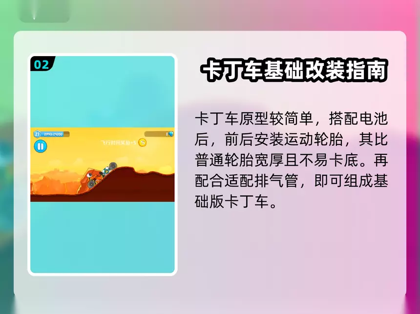 刚入手这款游戏,大家分享个组装卡丁车的小技巧!😊先搞个电池,前后装上运动轮胎,比普通轮胎宽厚,不容易卡底哦~再配个排气管,基础版卡丁车就搞定啦!🚀开起来速度不错,但高坡起跳容易翻,要稳住手!在新手村和水星挺好用的,后面关卡就得加涡轮和三脚架稳固车身啦~💡你们还有什么改装妙招吗?快来评论区聊聊吧!一起变强大!💪✨