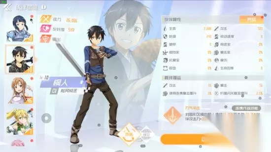 《刀剑神域黑衣剑士王牌》有6个不同色角色,那么选择哪个角色比较好?哪个角色值得培养?一起来看看吧。 养成总述 伙伴只有两种用法,连携和助战。 因此,所有培养都要以这两个功能取向为目标,助战不常用,所以只提一下,不深入说明。 如果你选择的伙伴只用来连携,那么除了等级、武器和好感度外,都不用考虑。其他方面除了字面战力的提升和微小的伤害加成外,没有任何实际意义。 如果你选择的伙伴只用来助战,虽然助战没什么用,除了好感度之外都要考虑。对,包括装备。