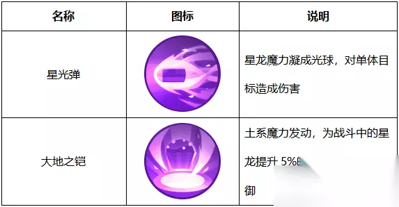 ◇精灵名称:星龙 ◇阵 营: 土 ◇精灵定位:防御型 ◇稀 有 度: SSR ◇属性评分: 输出:30 | 防御:30 | 控制:95 | 治疗:95 | 辅助:85