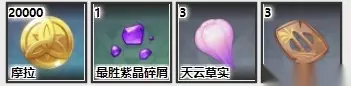 【70级】:摩拉100000、最胜紫晶块6、雷庭数珠12、天云草实45、名刀镡12。