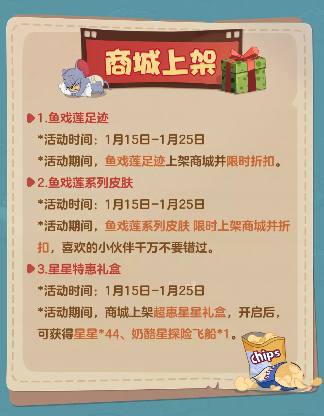 活动期间,商城上架超惠星星礼盒,开启后,可获得星星44、奶酪星探险飞船*1。