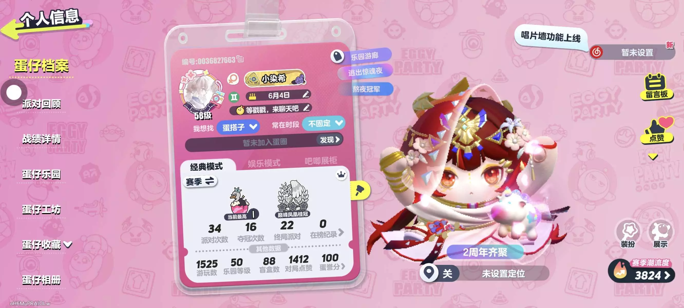 蛋仔玩两年左右,主玩里面的惊魂夜,乐园,不太爱玩巅峰(如果想玩可以陪的)