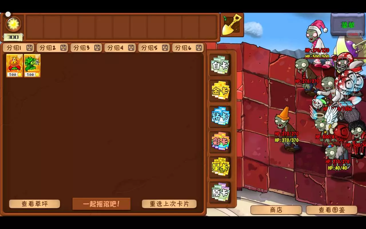 就在我看图鉴的时候,发现他们的弱点是高坚果,我无意间点到了商店,看到了冰封高坚果,但是要1万5,我看了看金币有27000就直接买那个坚果保护伞还不如冰封高坚果呢,可以防御撑杆跳,跳跳舞王僵尸,黄油第四可以防爆炸车僵尸,刚刚没注意被爆炸车僵尸炸了一部分,不过已经到最后一段了,直接赢了