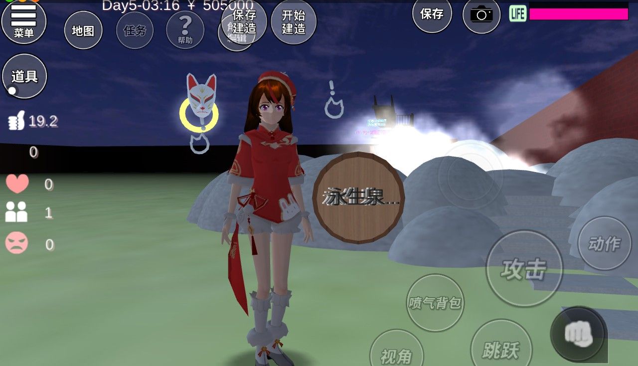 玩的时候把时间调成夜晚八点。
