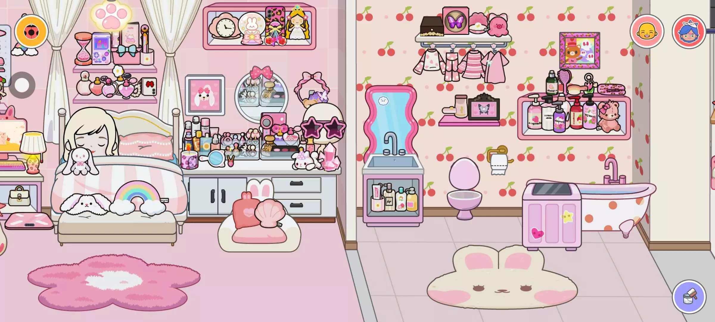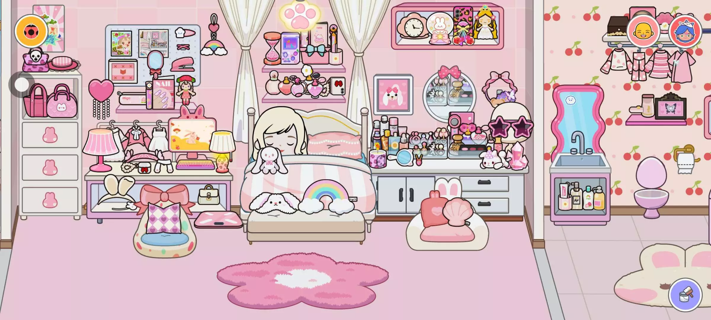 粉色系房间,豪华大别墅2楼布置。