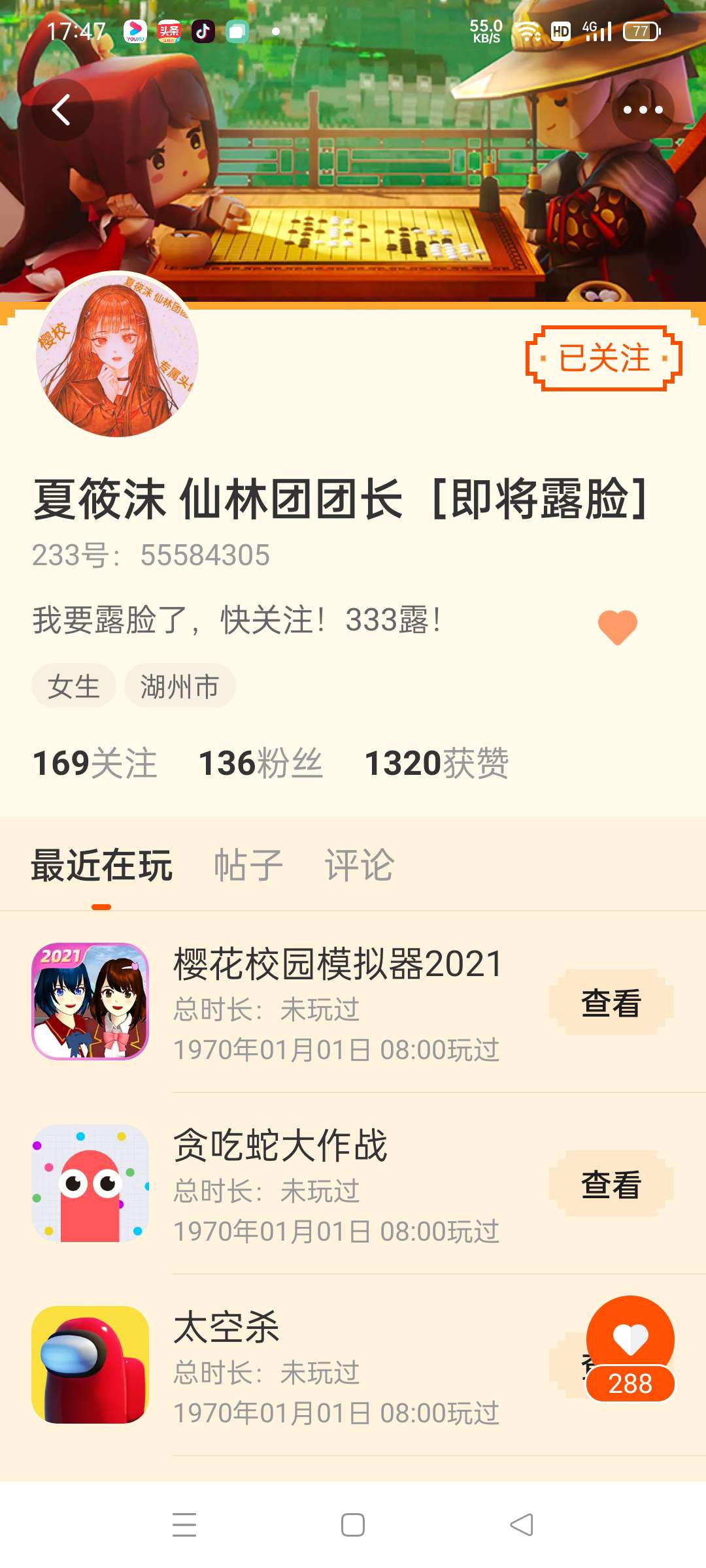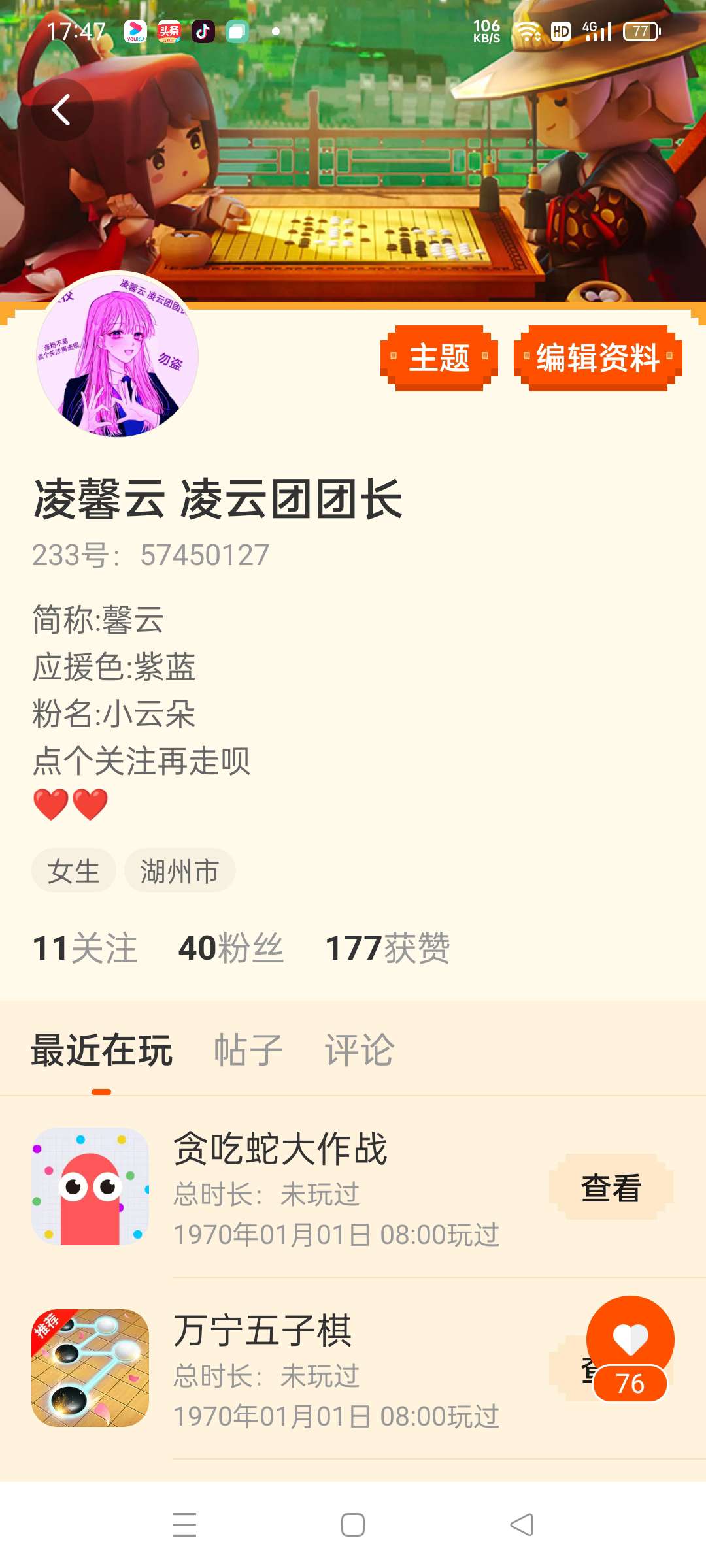 简称:馨云 应援色:紫蓝 粉名:小云朵 点个关注再走呗 ❤❤