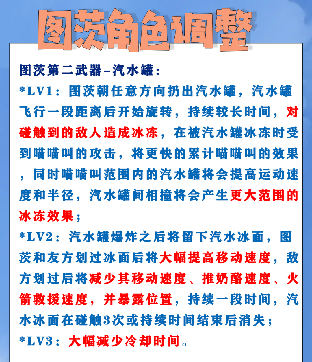 *修复了图茨汽水罐生成的冰面会打断喵喵叫的问题,冰块生成的冰面不受影响;