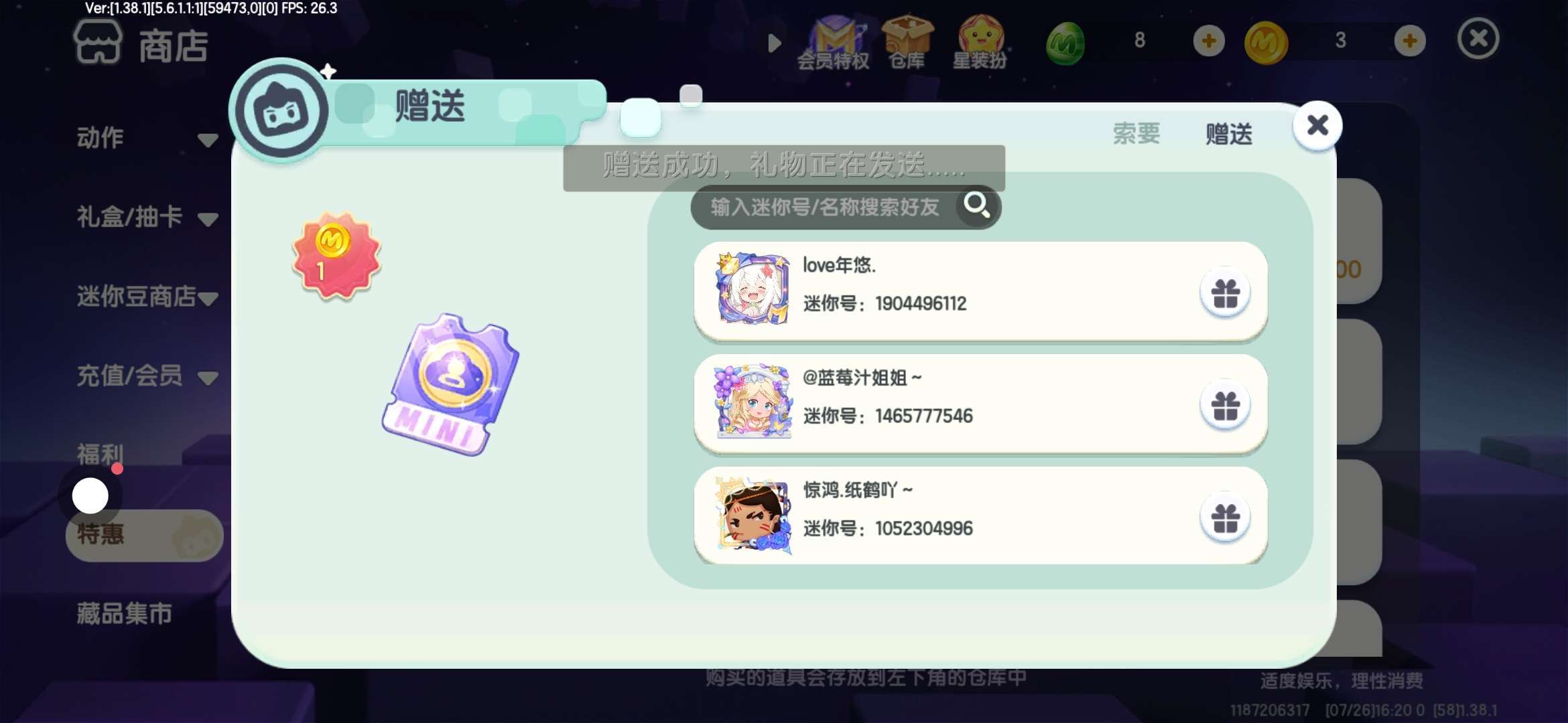 给和我一起玩生存的三个队员和我徒弟送的(。ò ∀ ó。)