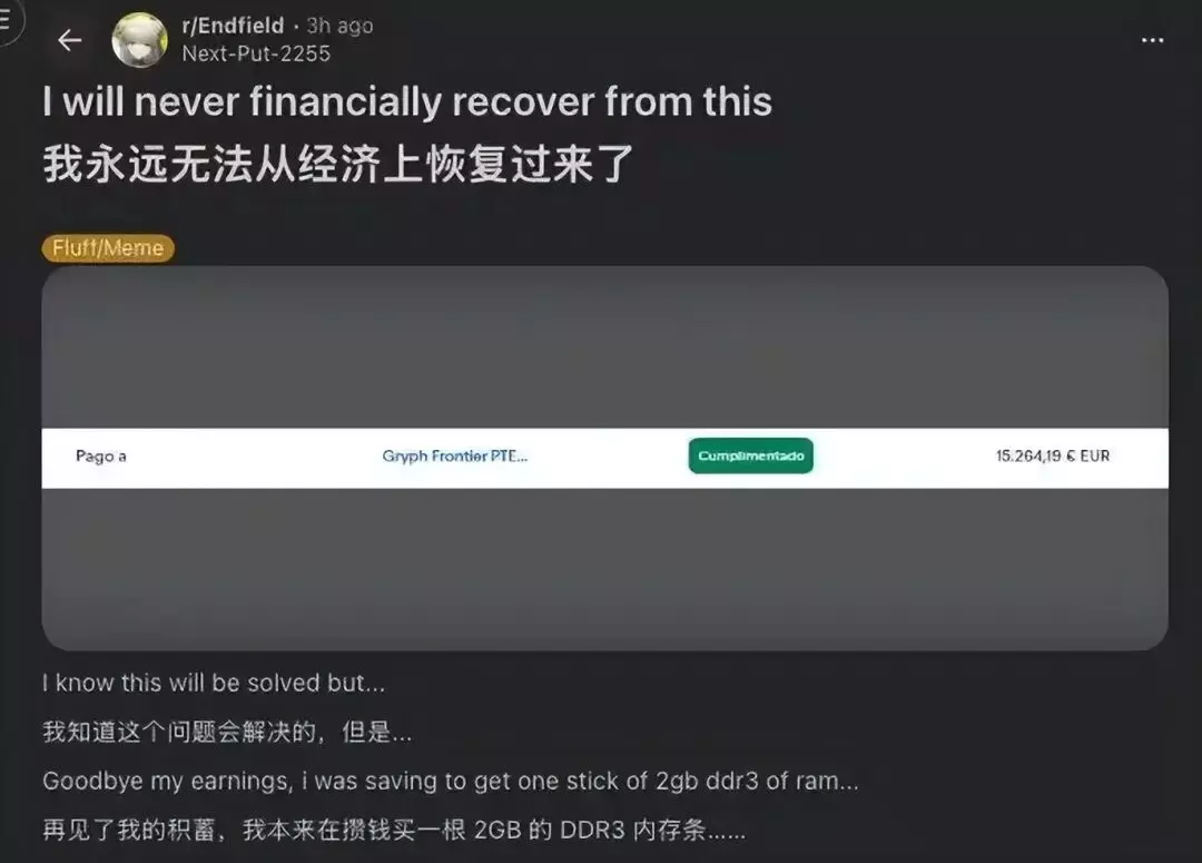 在海外社区,有玩家明确表示:自己在这次支付异常中,损失了 约 1.5 万欧元,折合人民币 12 万左右。
