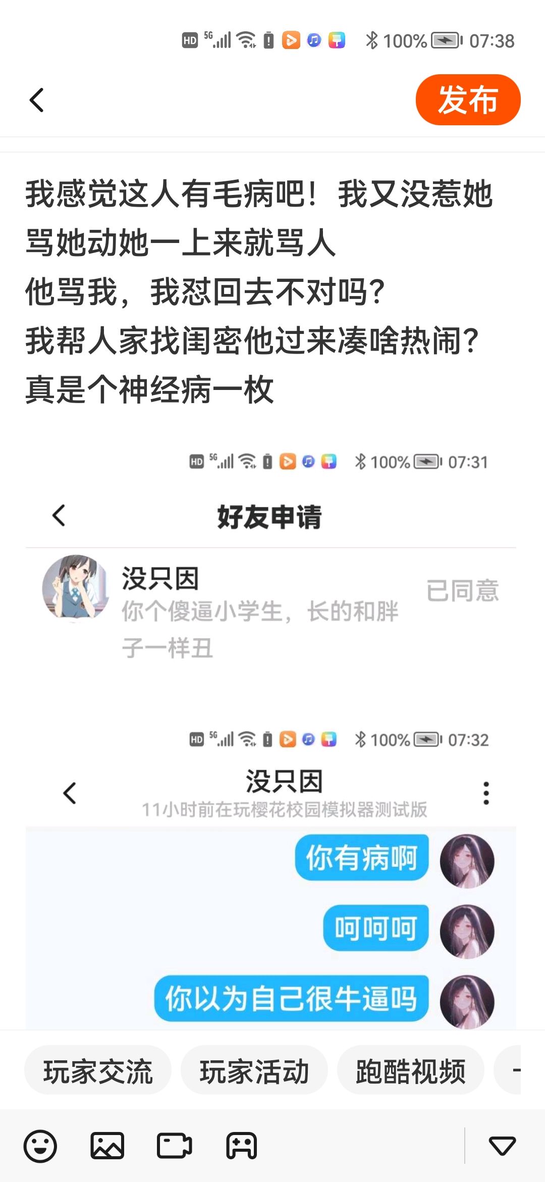 第一张是上次说我的,没给他计较,第二张,是他又来了,怎么我坐个兔车兴奋,我过年没想充,哒妈,关你什么事!说我先说你的?好好好证据!你有证据吗?!第三张你又像变了一张脸似的在我大号评论里发了羡慕和🌚什么意思啊看不起别人小号是吧