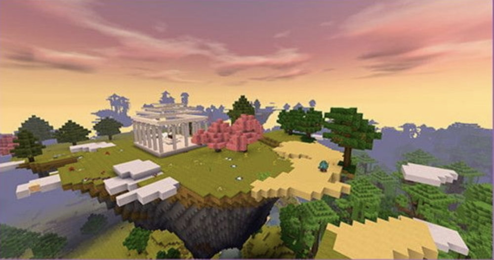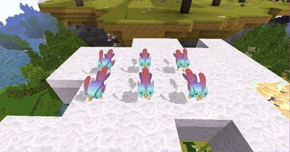 首先说说空岛的外形,大空岛就像一个倒锥体,小空岛就是平坦的。空岛周围有云团,如果你幸运的话,也能漫道彩云。在空岛上,大概率出现神殿,还有富裕的商人会出售物品。而最常见的生物就是飞鸡、雀莺和蝴蝶,飞鸡大家不陌生,但雀莺和蝴蝶便是这次空岛的新生物。