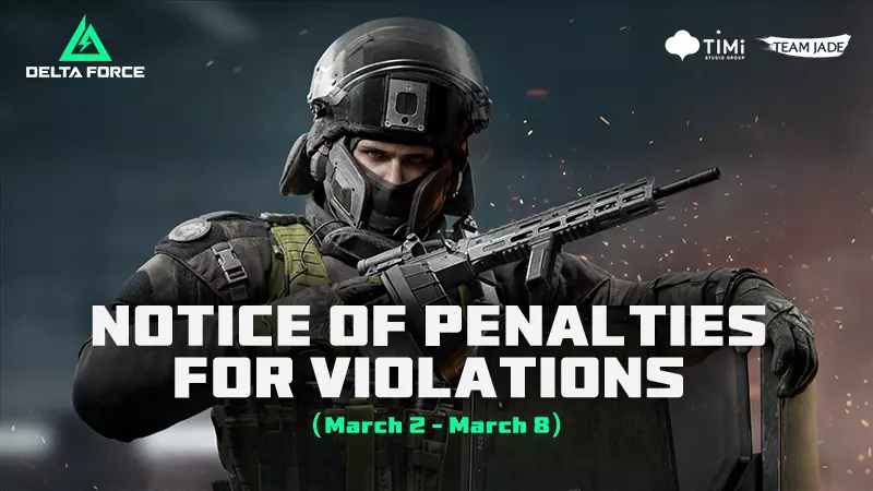 各位干员, 《三角洲行动》安全团队致力于维护公平的游戏体验,将对任何被发现作弊或违反服务条款的行为采取相应限制措施。 作为开发者,我们深知为《三角洲行动》玩家营造安全且有趣的游戏环境至关重要。因此,我们对任何违反游戏规则的行为采取零容忍政策。这包括但不限于使用外挂、非法软件、不当行为、恶意利用漏洞或BUG等。一旦发现此类行为,我们将立即展开调查并采取相应措施,包括但不限于永久封禁账号、IP封禁以及游戏内外通知等。同时,我们也邀请玩家通过游戏内举报渠道及社区积极举报游戏中的不当行为,共同维护公平健康的游戏环境。 重要通知: 各位干员,大家好。 为提升游戏安全体验,G.T.I.安全团队经慎重考虑决定扩大作弊击杀补偿范围: 此前,仅受10年封禁作弊者影响的玩家可获得作弊击杀补偿。现在,受30天封禁作弊者影响的玩家也可获得作弊击杀补偿。当玩家收到确认30天或10年封禁的邮件后,作弊者击杀补偿将在该邮件发送后的3个工作日内通过游戏内邮件发放。请及时查收邮件。 注意:若带入对局的装备已由队友带出并归还给你,则不会再次发放该击杀补偿。 PC端: 本周(2026年3月2日-2026年3月8日),封禁行动针对4832名用户实施10年封禁,其中包括476次DMA封禁/实时拦截/冻结操作。此外,14669台设备被封禁一年,7235次作弊尝试被实时阻止,411名作弊玩家被强制下线,326名与作弊者组队的玩家被发出警告。同时还包括52起封禁案例,并没收了违规获取的收益。 移动端: 732名玩家被处以10年封禁,实时拦截了18156次作弊尝试。 经济安全违规行为整治: 我们持续打击通过第三方低价充值、盗号转移、欺诈性卡费及其他非官方折扣充值方案(包括但不限于直接货币充值、通过在市场高价售卖外观道具获取【三角洲票券】等RMT交易)等方式违规获取【三角洲币】/【三角洲票券】的行为。上周共处理42起相关案例,所有通过上述方式获取的非法【三角洲币】/【三角洲票券】均已被没收。我们进一步打击了自动化脚本的使用,涵盖“账号批量自动注册”“多客户端自动登录”“自动刷取(速通)”“自动分解”“自动出售物资”等行为。仅上周就处理了8025起违规案例,其中包括3900起收益没收和4125起账号封禁。 我们在此确认,将继续对所有违规账号进行实时处理。请所有玩家遵守游戏规则,共同维护健康公平的游戏环境! 以下是本次部分处理账号的名单。 *名单排列不分先后。