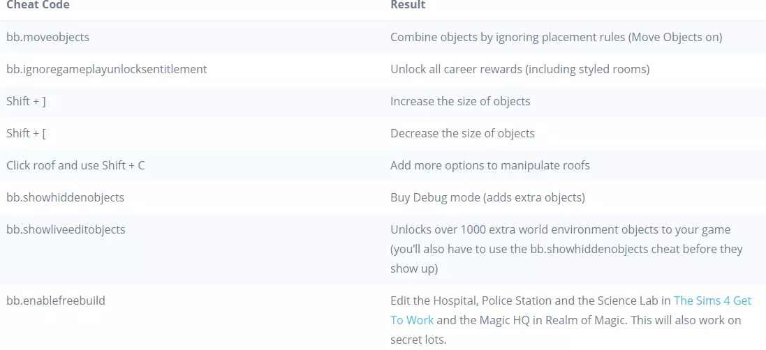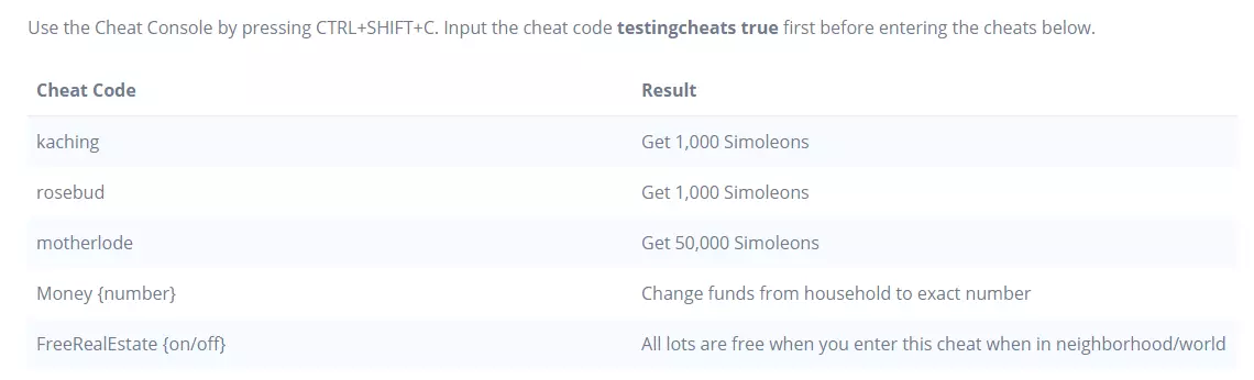 模组 在《模拟人生4》中使用这些作弊码前,你需要下载一个非常简单的模组。 该模组适用于(季节变更、情绪及心情作弊码、怀孕作弊码、死亡作弊码) 使用作弊码的方法提醒: 1. 进入游戏并加载存档 2. 同时按下Ctrl+Shift+C 3. 在右上角的白色文本框中输入testingcheats true 4. 在文本框中逐个输入作弊码,然后按回车键 5. 祝你玩得开心