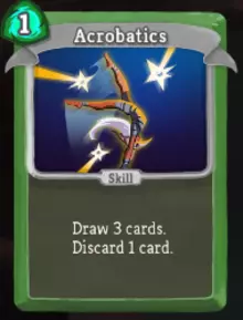 杂技是最出色的抽牌法术。我总会带一张杂技,通常还会带两张。 如果你打算在某个回合使用杂技,就先打出它。看到抽的牌后,你可能会改变出牌的想法。 杂技和战术家配合效果很好——如果我只有一张杂技,并且有初始的幸存者与之配合,我就会选战术家。它和反应不太搭,因为你往往没法把抽六张牌的效果塞进手牌里。 升级杂技相当不错。抽四张牌比抽三张好。